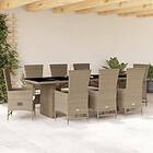 vidaXL Matgrupp för trädgården med dynor 9 delar beige konstrotting 3277584