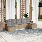 vidaXL Matgrupp för trädgården med dynor 7 delar beige konstrotting 3227914