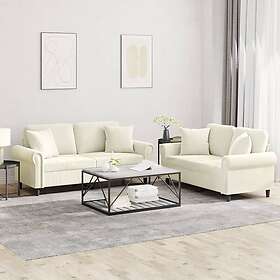 vidaXL Soffgrupp med kuddar 2 delar gräddvit sammet 3202238