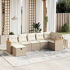 vidaXL Matgrupp för trädgården med dynor 7 delar beige konstrotting 3265314