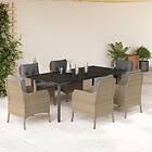 vidaXL Matgrupp för trädgården med dynor 7 delar beige konstrotting 3211988