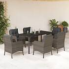 vidaXL Matgrupp för trädgården med dynor 7 delar grå konstrotting 3211959