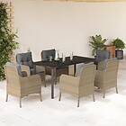 vidaXL Matgrupp för trädgården med dynor 7 delar beige konstrotting 3211987