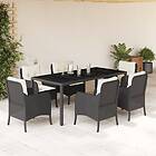 vidaXL Matgrupp för trädgården med dynor 7 delar svart konstrotting 3211846