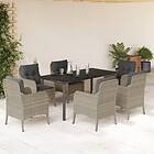 vidaXL Matgrupp för trädgården med dynor 7 delar ljusgrå konstrotting 3212001