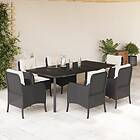 vidaXL Matgrupp för trädgården med dynor 7 delar svart konstrotting 3211918