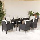 vidaXL Matgrupp för trädgården med dynor 7 delar svart konstrotting 3211917