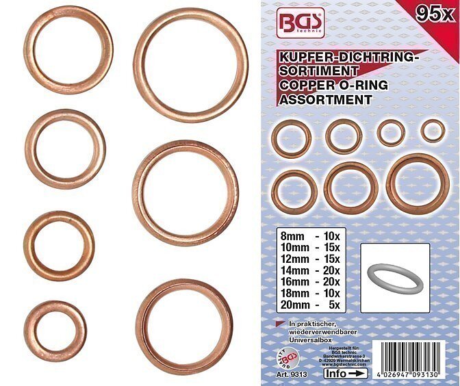 BGS Koppar O-ringsortiment 4-20mm. 95 delar