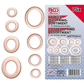 BGS Kobber packningsringssortiment 5-17,5mm. 75 delar