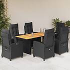 vidaXL Matgrupp för trädgården med dynor 7 delar svart konstrotting 3212936