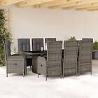 vidaXL Matgrupp för trädgården med dynor 9 delar grå konstrotting 3213529