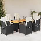 vidaXL Matgrupp för trädgården med dynor 7 delar svart konstrotting 3212934