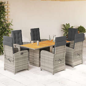 vidaXL Matgrupp för trädgården med dynor 7 delar grå konstrotting 3212278