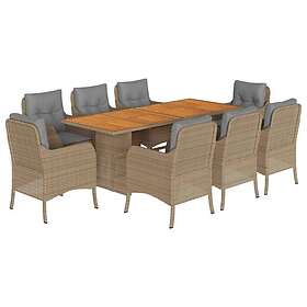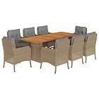 vidaXL Matgrupp för trädgården med dynor 9 delar beige konstrotting 3211903