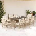 vidaXL Matgrupp för trädgården med dynor 9 delar beige konstrotting 3212063