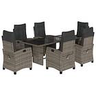 vidaXL Matgrupp för trädgården med dynor 7 delar grå konstrotting 3212924