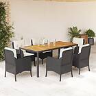 vidaXL Matgrupp för trädgården med dynor 7 delar svart konstrotting 3211864