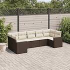 vidaXL Trädgårdssoffset med dynor 7 delar brun konstrotting 3219383