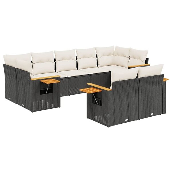 vidaXL Loungegrupp för trädgården m dynor 9 delar svart konstrottning 3259529