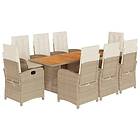 vidaXL Matgrupp för trädgården med dynor 9 delar mixbeige konstrotting 3212285