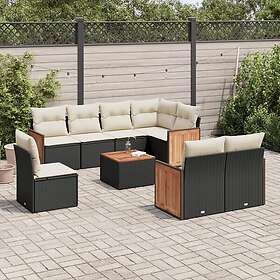 vidaXL Loungegrupp för trädgården m dynor 9 delar svart konstrottning 3260250