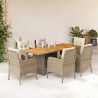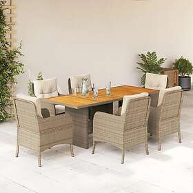 vidaXL Matgrupp för trädgården med dynor 7 delar beige konstrotting 3211900