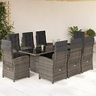 vidaXL Matgrupp för trädgården med dynor 9 delar grå konstrotting 3212258