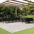 vidaXL Loungegrupp för trädgården 9 delar med dynor aluminium antracit 3107823