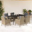 vidaXL Matgrupp för trädgården med dynor 7 delar beige konstrotting 3211980
