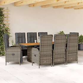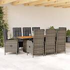 vidaXL Matgrupp för trädgården med dynor 9 delar grå konstrotting 3213519