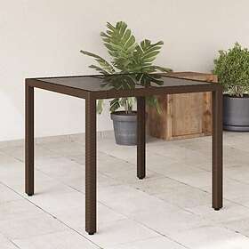 vidaXL Trädgårdsbord med glasskiva brun 90x90x75 cm konstrotting 365528