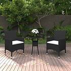 vidaXL Caféset 3 delar konstrotting och härdat glas svart 3095901