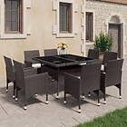 vidaXL Matgrupp för trädgården 9 delar konstrotting härdat glas brun 3095895
