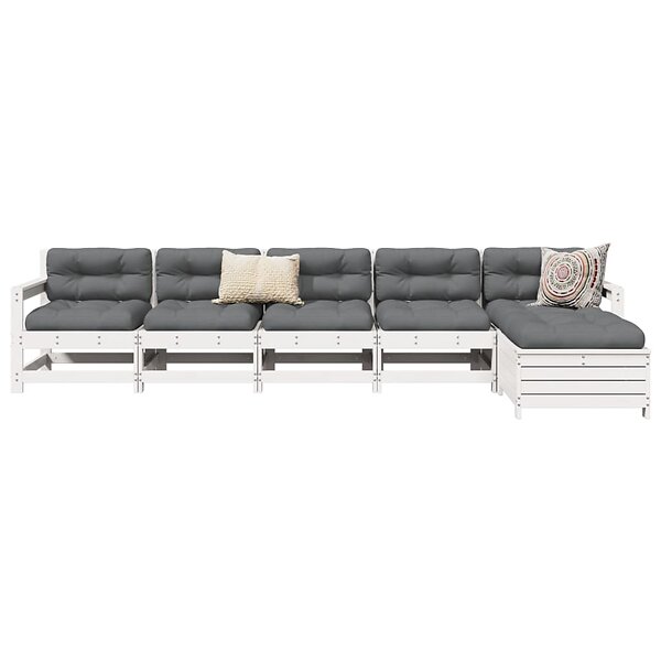 vidaXL Soffgrupp för trädgården 6 delar vit massiv furu 3250861