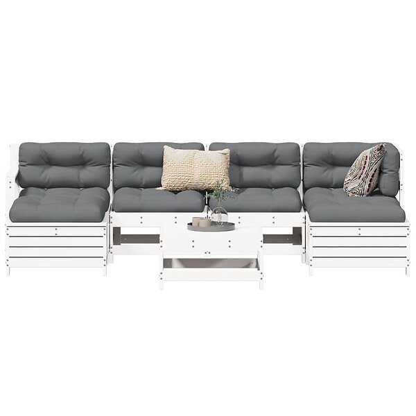 vidaXL Soffgrupp för trädgården 7 delar vit massiv furu 3250989