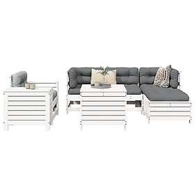 vidaXL Soffgrupp för trädgården 7 delar vit massiv furu 3250525