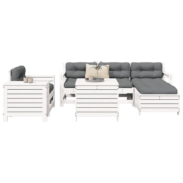 vidaXL Soffgrupp för trädgården 7 delar vit massiv furu 3250533