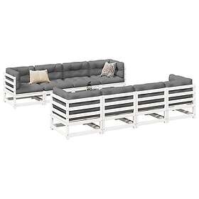 vidaXL Soffgrupp för trädgården 9 delar vit massiv furu 3299354