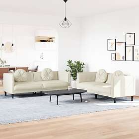 vidaXL Soffgrupp med kuddar 2 delar gräddvit sammet 3209264