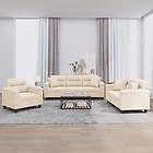 vidaXL Soffgrupp med kuddar 3 delar Beige mikrofibertyg 3202307
