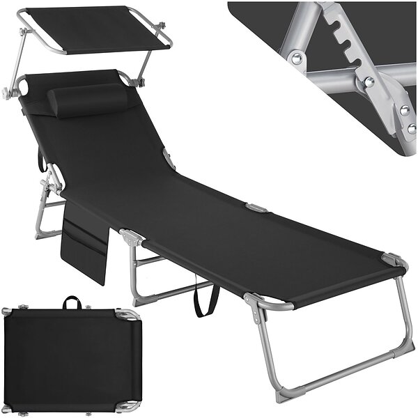 TecTake Solstol Chloé, 4-stegs justering med nackkudde och ficka svart