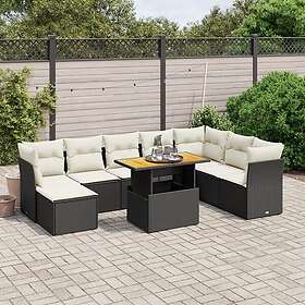 vidaXL Loungegrupp för trädgården m dynor 9 delar svart konstrottning 3267166