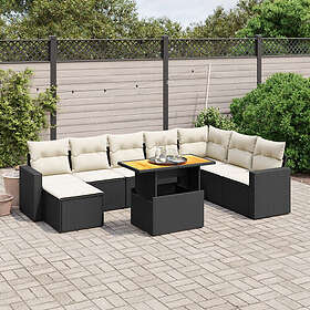 vidaXL Loungegrupp för trädgården m dynor 9 delar svart konstrottning 3275186
