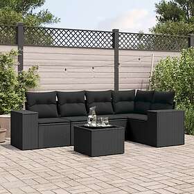 vidaXL Loungegrupp med dynor 6 delar svart konstrotting 3267896
