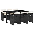 vidaXL Matgrupp för trädgården med dynor 7 delar svart konstrotting 3210546