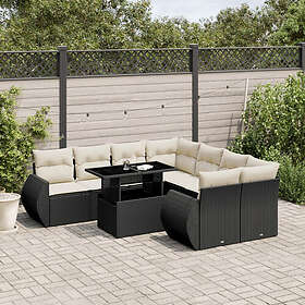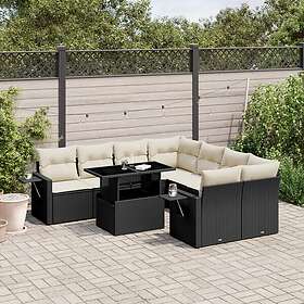 vidaXL Loungegrupp för trädgården m dynor 9 delar svart konstrottning 3267796