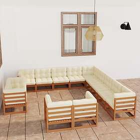 vidaXL Loungegrupp med dynor 13 delar honungbrun massiv furu 3077017
