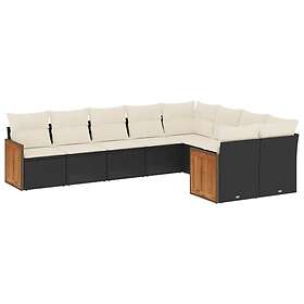 vidaXL Loungegrupp för trädgården m dynor 9 delar svart konstrottning 3266425