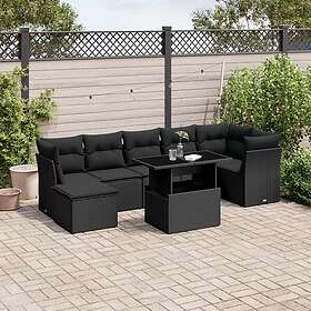 vidaXL Loungegrupp för trädgården med dynor 8 delar svart konstrotting 3266745