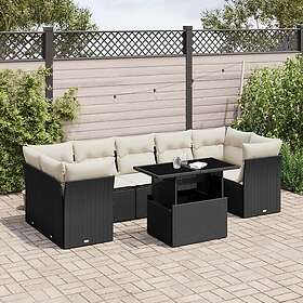 vidaXL Loungegrupp för trädgården med dynor 8 delar svart konstrotting 3266406